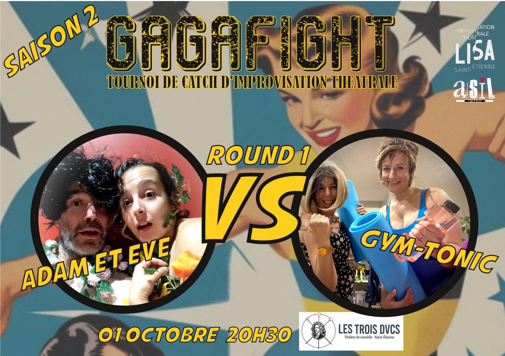 Le tournoi de Catch Impro, le GAGA FIGHT est un nouveau rendez-vous mensuel en partenariat avec l‘ASIL et se déroule aux TROIS DUCS, 48 Rue Michelet à SAINT-ETIENNE.
